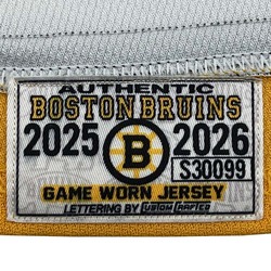 Own a piece of history with Bruins Authentic Game-Used jerseys. Used during the 2025-2026 Season, this game-used jersey is authenticated by the Boston Bruins.